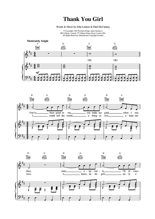 Digital Sheet Music for Thank You Girl by Paul McCartney, The Beatles, John Lennon scored for Piano/Vocal/Chords; id:376127