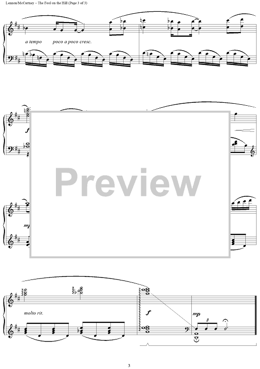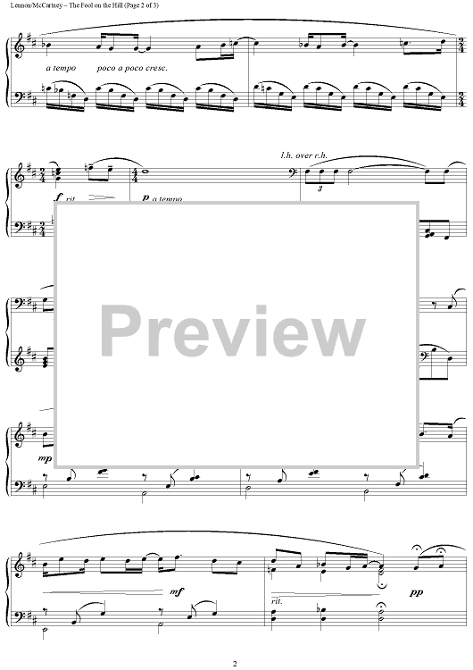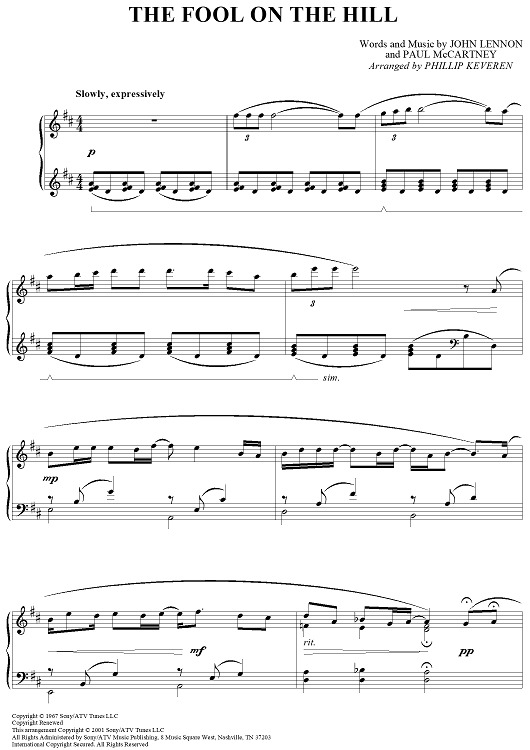 Digital Sheet Music for The Fool On The Hill by Paul McCartney, The Beatles, John Lennon, Phillip Keveren scored for Piano Solo; id:396537