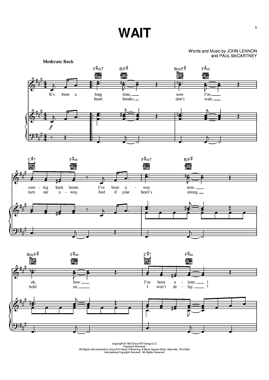 Digital Sheet Music for Wait by Paul McCartney, The Beatles, John Lennon scored for Piano/Vocal/Chords; id:394846