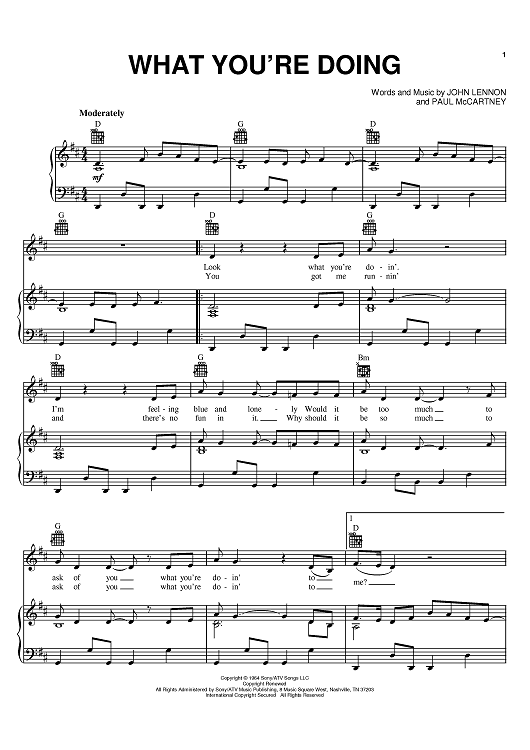Digital Sheet Music for What You're Doing by Paul McCartney, The Beatles, John Lennon scored for Piano/Vocal/Chords; id:394847