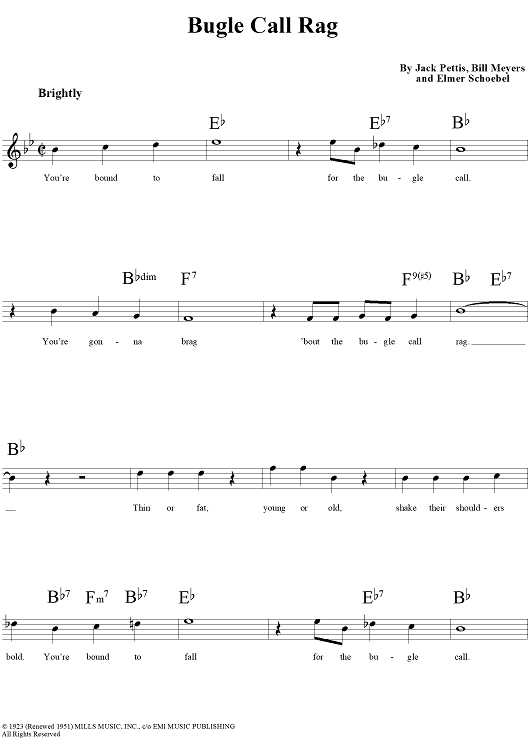 Digital Sheet Music for Bugle Call Rag by Jack Pettis, Bill Meyers, Elmer Schoebel, Benny Goodman scored for Lead Sheet; id:109833