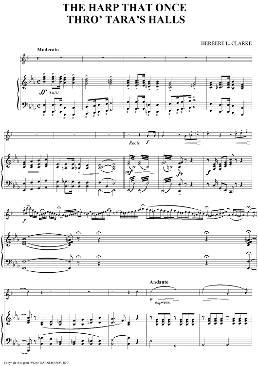 "The Harp That Once Thro' Tara's Halls" Sheet Music by Herbert L. Clarke