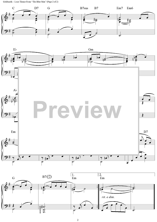 Digital Sheet Music for Love Theme from "The Blue Max" by Jerry Goldsmith scored for Piano/Chords; id:428173