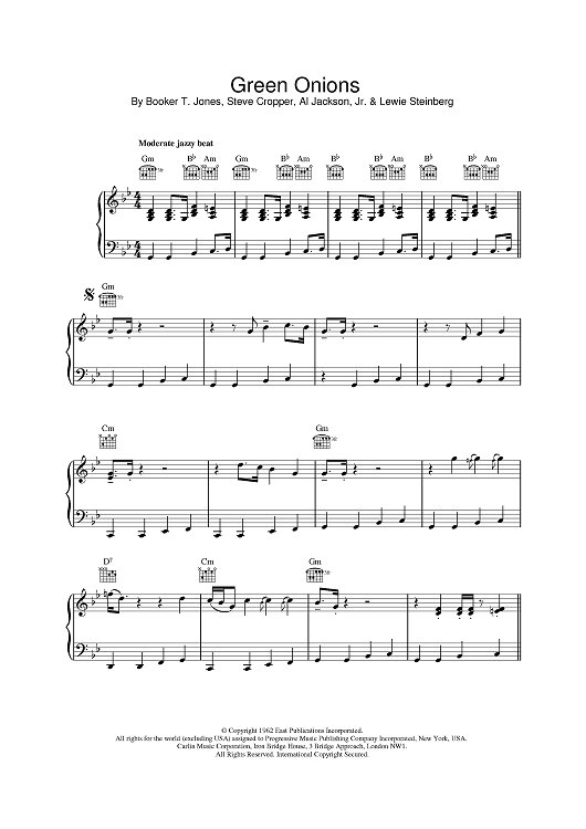Digital Sheet Music for Green Onions by The Ventures, The Blues Brothers, Booker T. & The MG's scored for Piano/Vocal/Chords; id:378934
