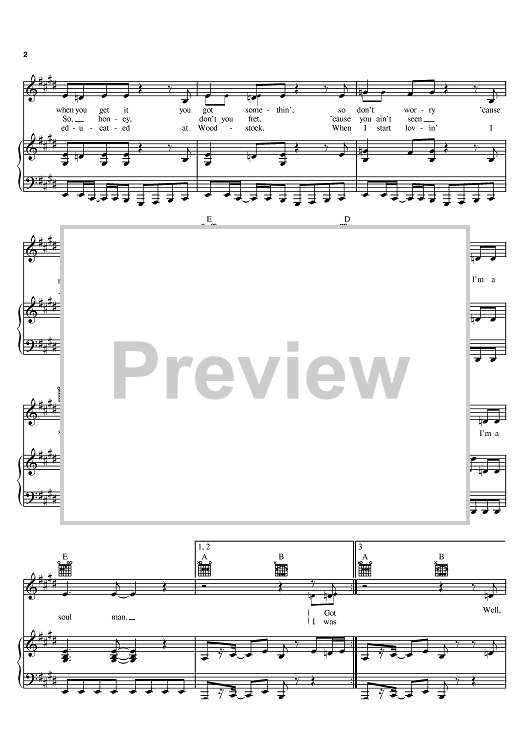 Digital Sheet Music for Soul Man by Isaac Hayes, David Porter, Sam & Dave, The Blues Brothers scored for Piano/Vocal/Chords; id:367544
