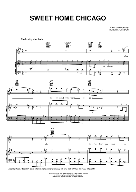 "Sweet Home Chicago" Sheet Music by Robert Johnson