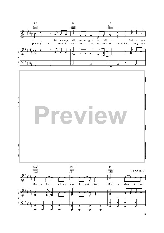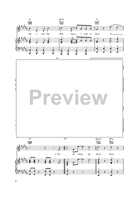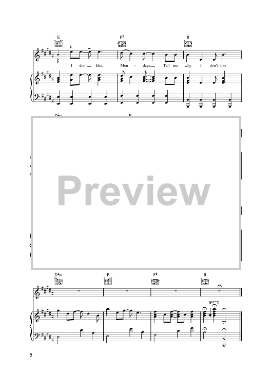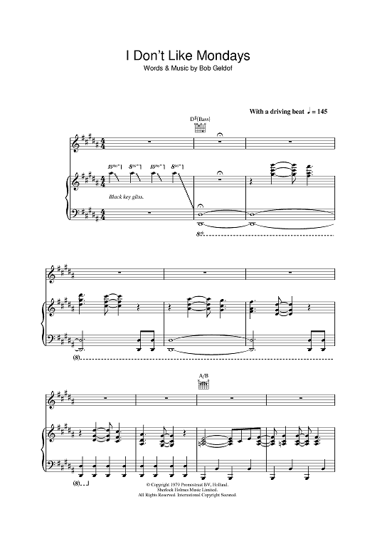 Digital Sheet Music for I Don't Like Mondays by Bob Geldof, Tori Amos, The Boomtown Rats scored for Piano/Vocal/Chords; id:386928