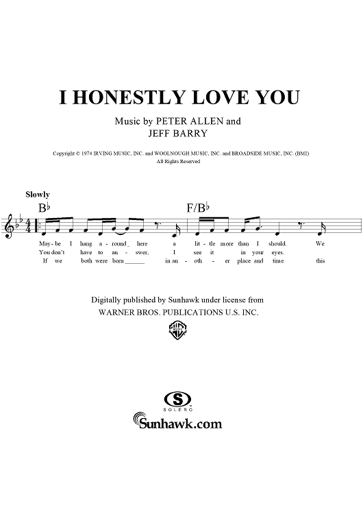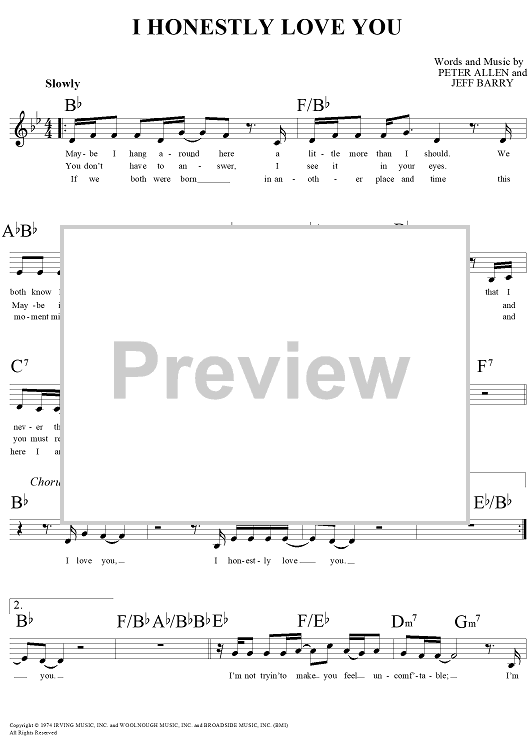 Digital Sheet Music for I Honestly Love You by Olivia Newton-John, Jeff Barry, Peter Allen scored for Lead Sheet; id:277787