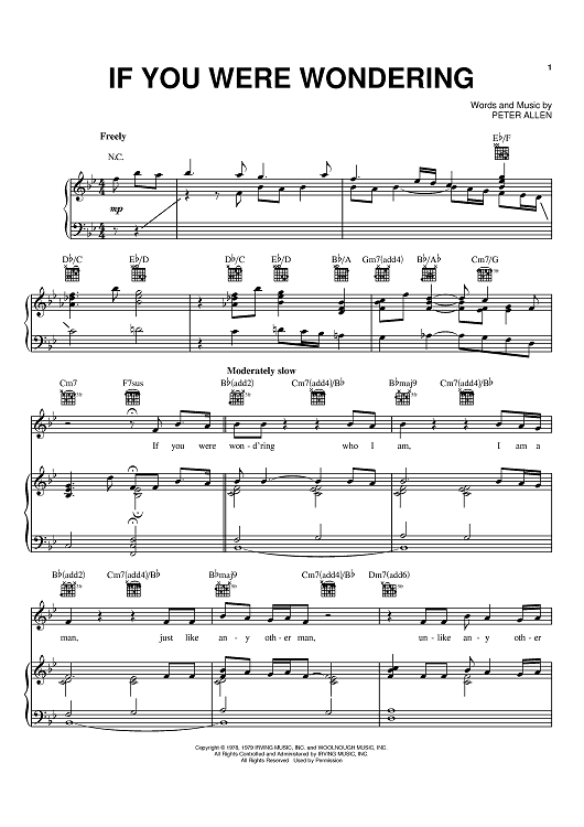 Digital Sheet Music for If You Were Wondering by Peter Allen scored for Piano/Vocal/Chords; id:373340