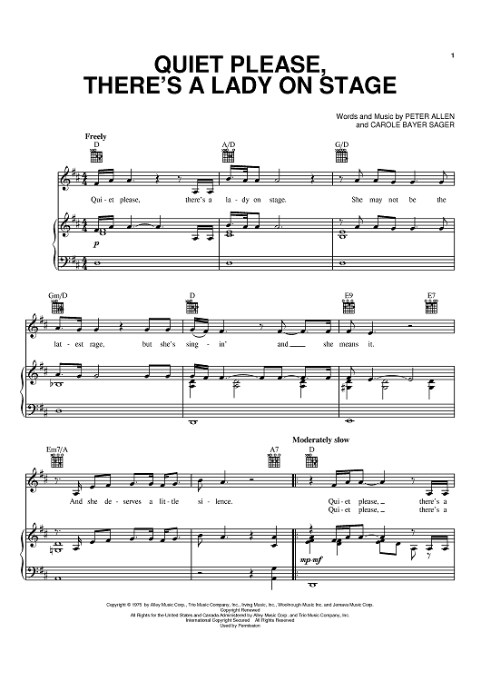 Digital Sheet Music for Quiet Please, There's A Lady On Stage by Carole Bayer Sager, Peter Allen scored for Piano/Vocal/Chords; id:373336