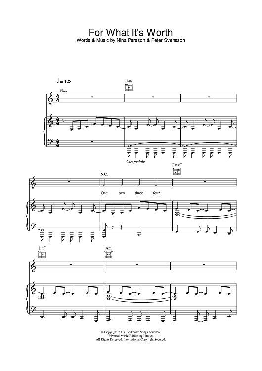 Digital Sheet Music for For What It's Worth by Nina Persson, Peter Svensson, The Cardigans scored for Piano/Vocal/Chords; id:378136