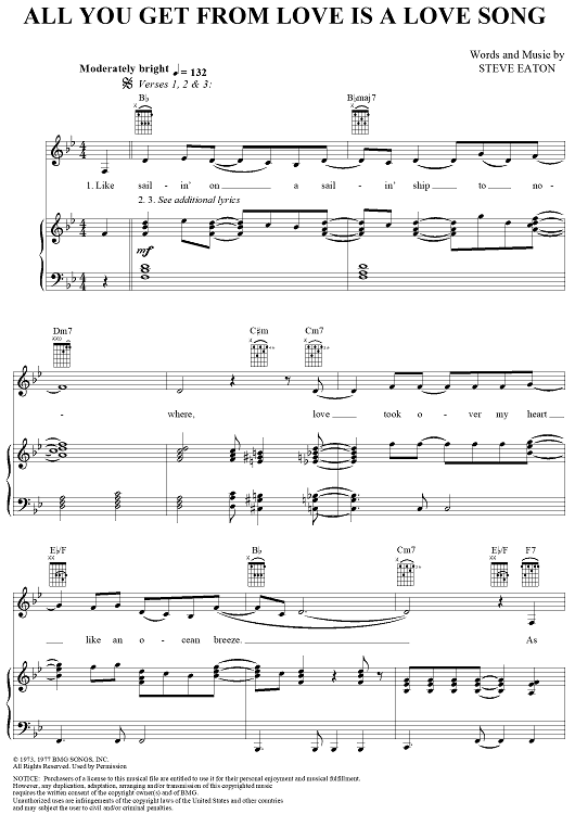 Digital Sheet Music for All You Get From Love is a Love Song by The Carpenters, Steve Eaton scored for Piano/Vocal/Chords; id:270585
