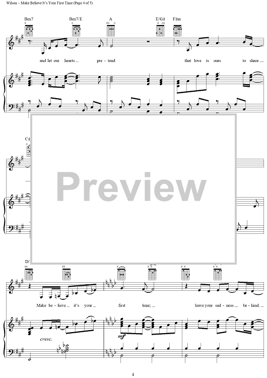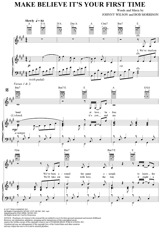 Digital Sheet Music for Make Believe It's Your First Time by The Carpenters, Bob Morrison, Johnny Wilson scored for Piano/Vocal/Chords; id:263775