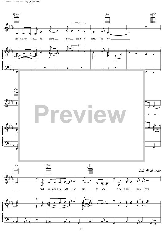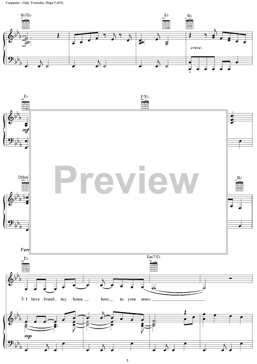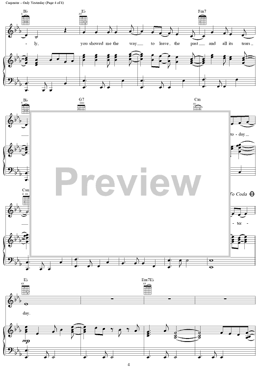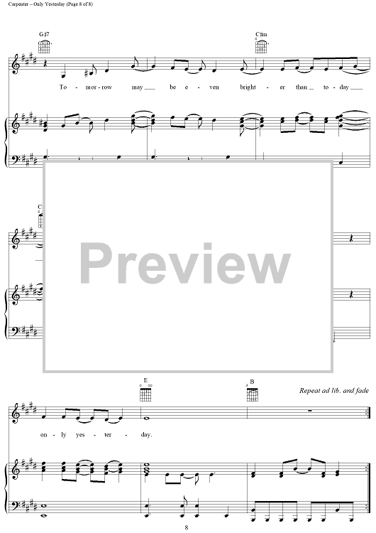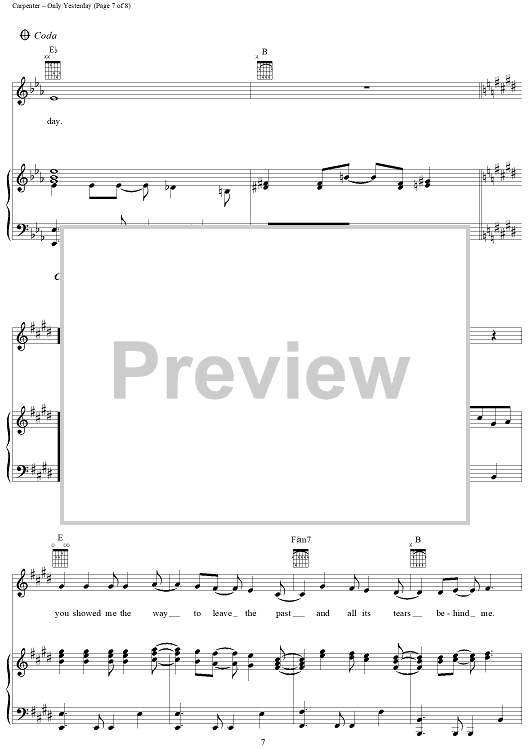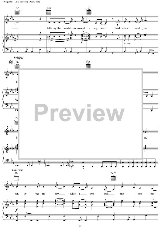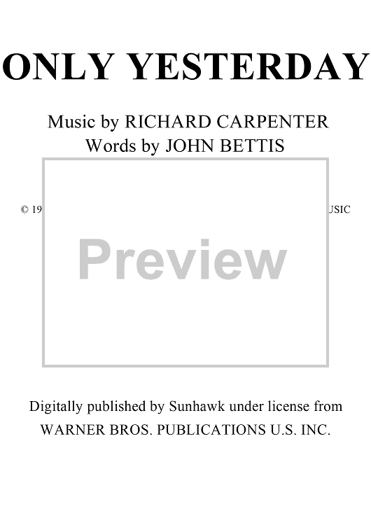 "Only Yesterday" Sheet Music by The Carpenters