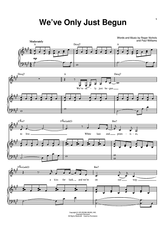Digital Sheet Music for We've Only Just Begun by The Carpenters, Roger Nichols, Paul Williams scored for Piano/Vocal/Chords; id:371115