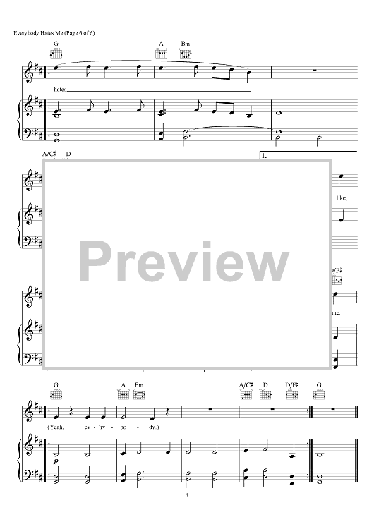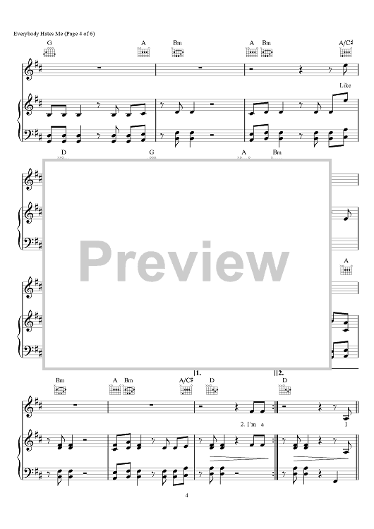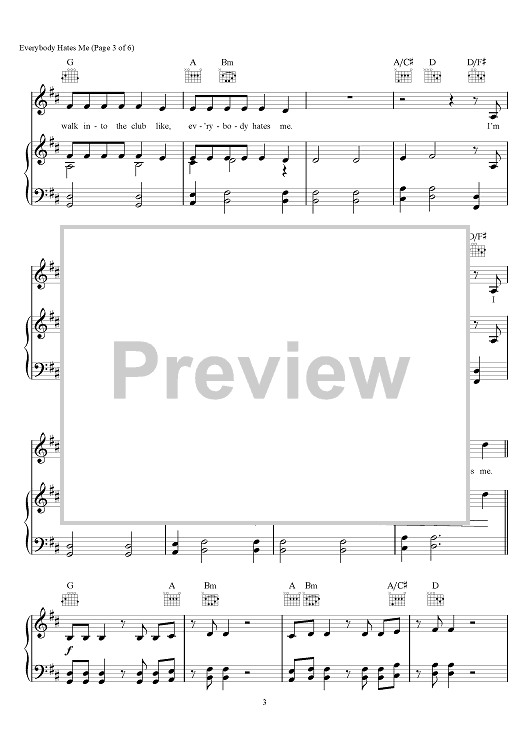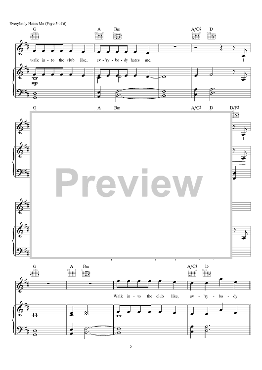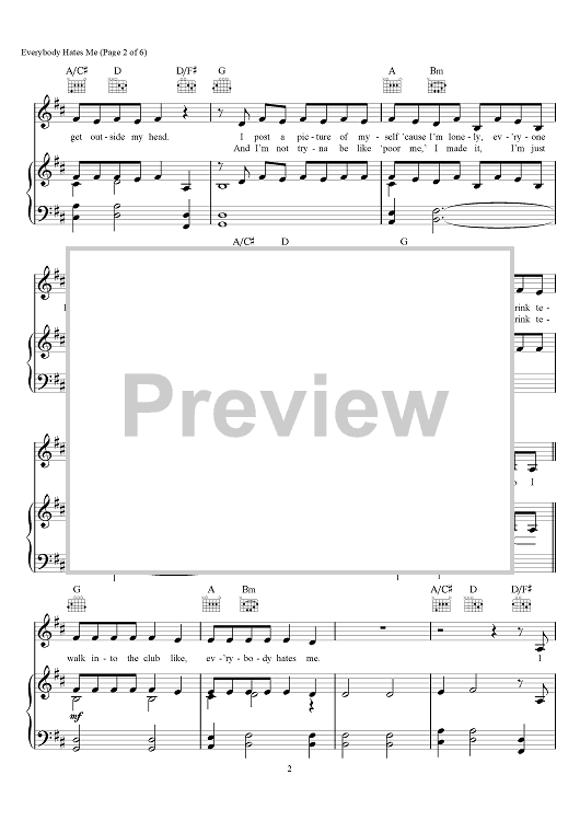 Digital Sheet Music for Everybody Hates Me by Andrew Taggart, The Chainsmokers, Emily Schwartz, Drew Love scored for Piano/Vocal/Chords; id:466323