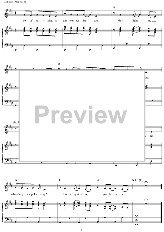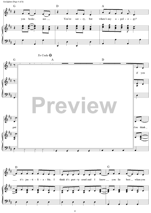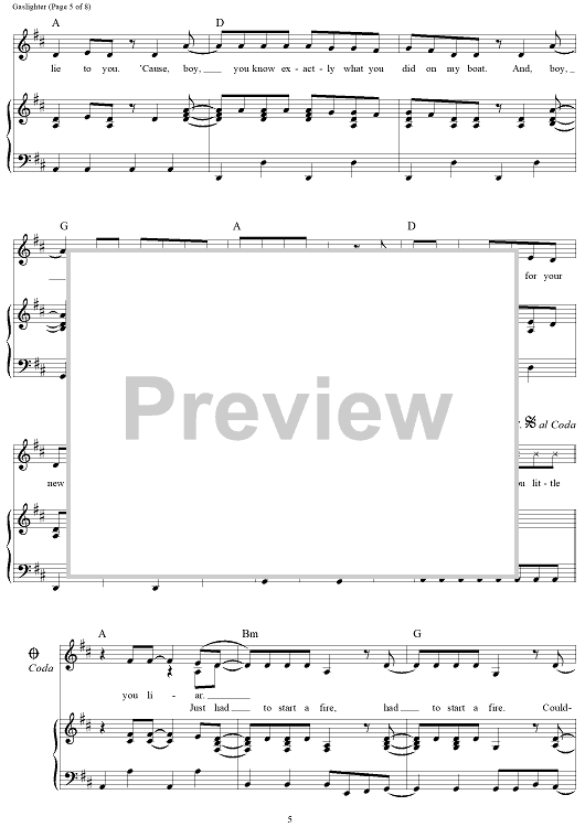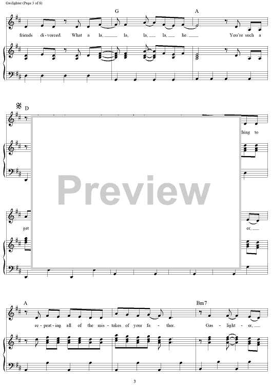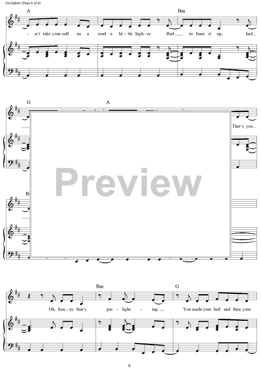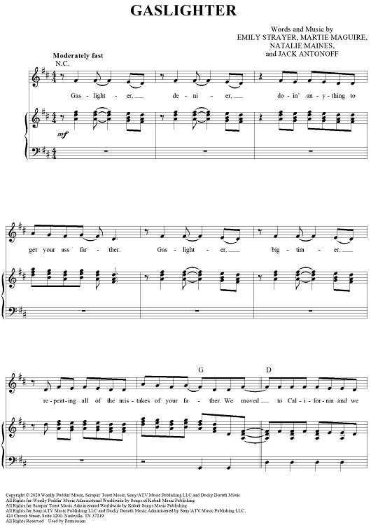 Digital Sheet Music for Gaslighter by The Chicks, Martie Maguire, Natalie Maines, Jack Antonoff, Emily Strayer scored for Piano/Vocal/Chords; id:468172