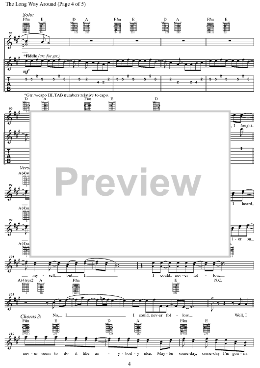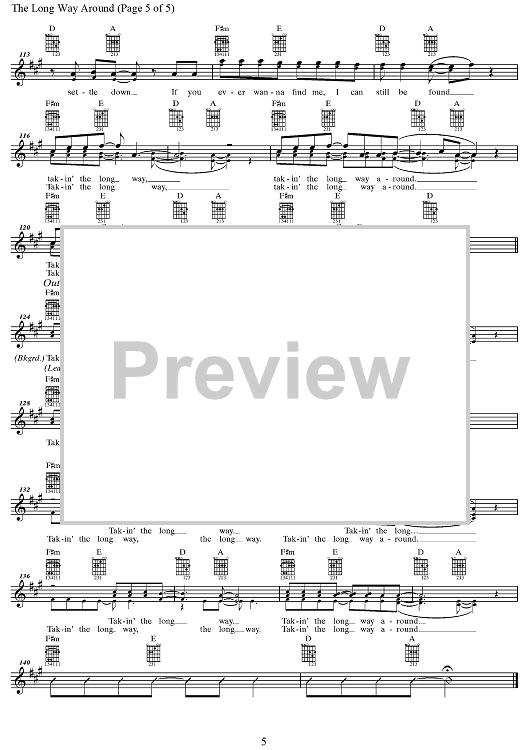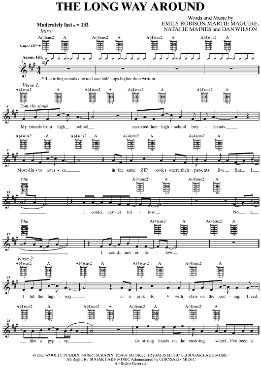 Digital Sheet Music for The Long Way Around by The Chicks, Dan Wilson, Emily Robison, Martie Maguire, Natalie Maines scored for Guitar Tab/Vocal; id:360634