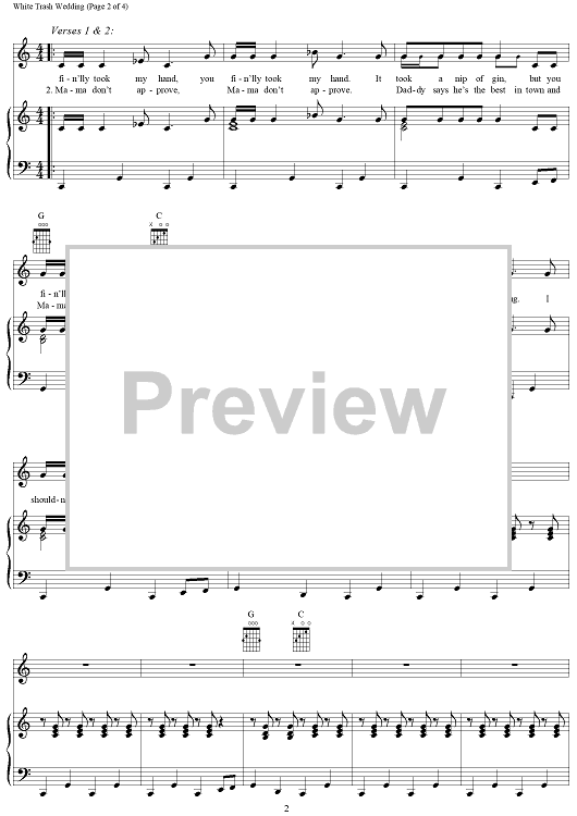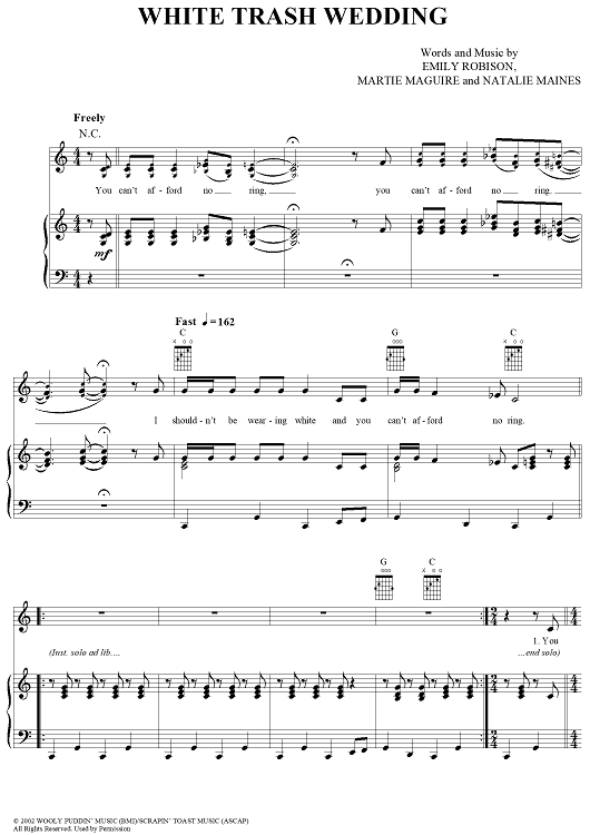 Digital Sheet Music for White Trash Wedding by The Chicks, Emily Robison, Martie Maguire, Natalie Maines scored for Piano/Vocal/Chords; id:293477