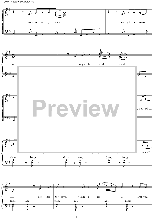 Digital Sheet Music for Chain of Fools by Don Covay scored for Piano/Vocal/Chords; id:116232