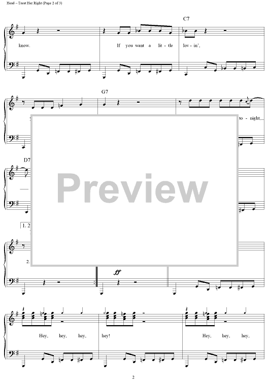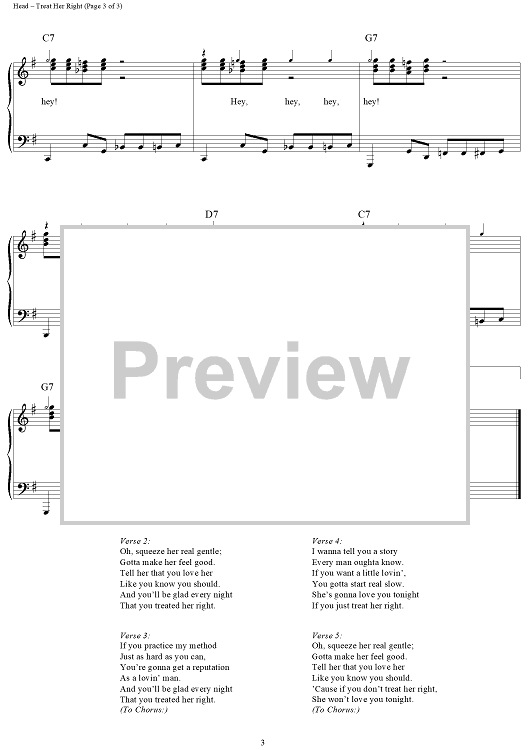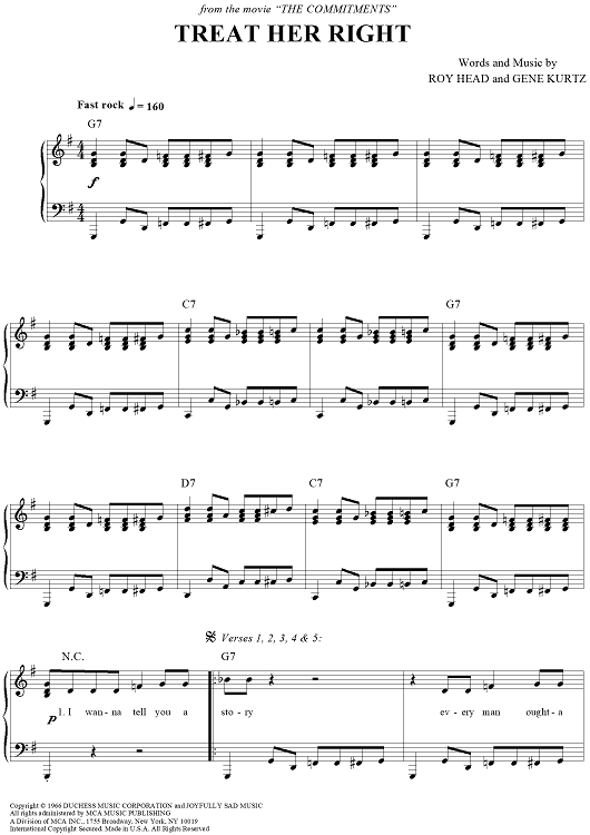 Digital Sheet Music for Treat Her Right by Roy Head scored for Piano/Vocal/Chords; id:120557