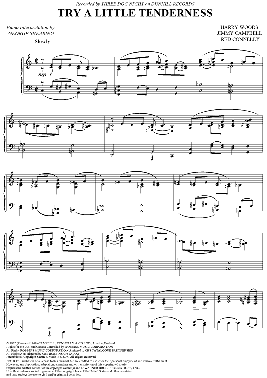 Digital Sheet Music for Try a Little Tenderness by George Shearing, Harry Woods, Reg Connelly, Jimmy Campbell scored for Piano Solo; id:115811