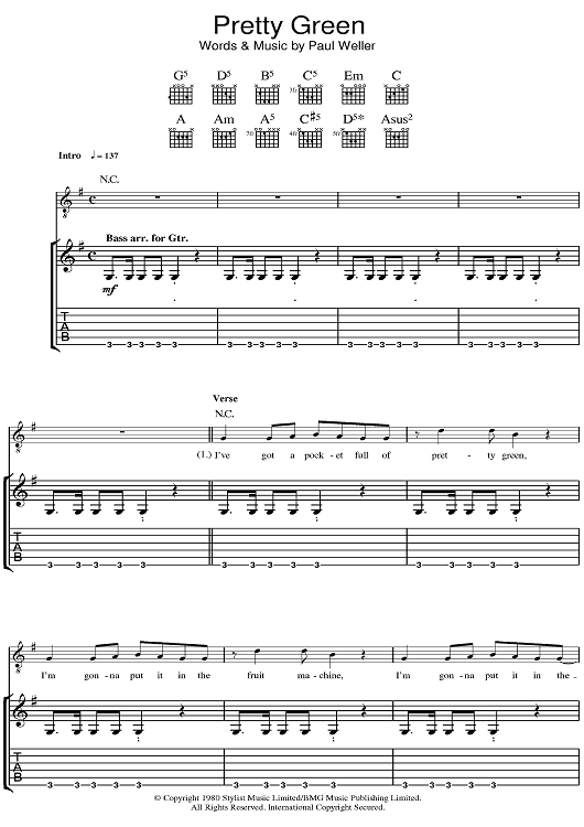 "Pretty Green" is the first track on 'Sound Affects', the fifth studio album by English rock band the Jam. The album was released on 28 November 1980 by Polydor Records.