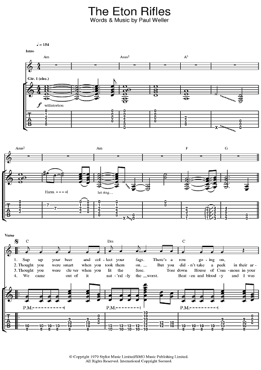 "The Eton Rifles" is a song recorded by the Jam, written by Paul Weller. It was the only song to be released as a single from the album 'Setting Sons'. Released on 26 October 1979, it became the band's first top-ten hit on the UK Singles Chart, peaking at No. 3.
