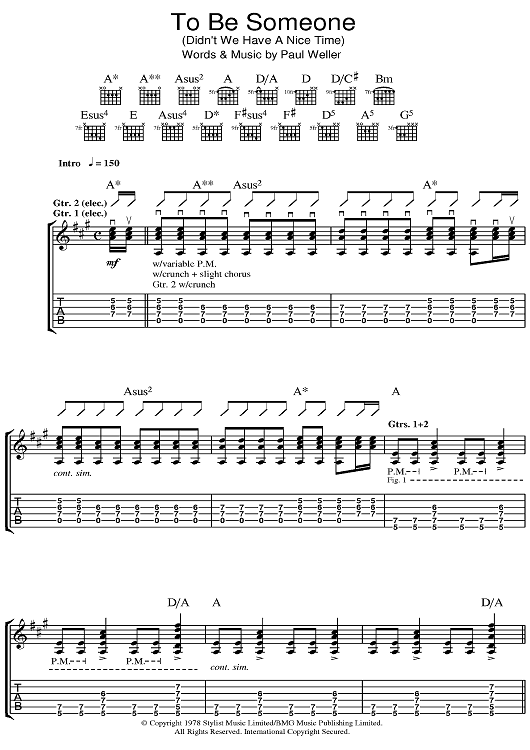 "To Be Someone (Didn't We Have A Nice Time)" Sheet Music by The Jam