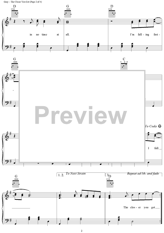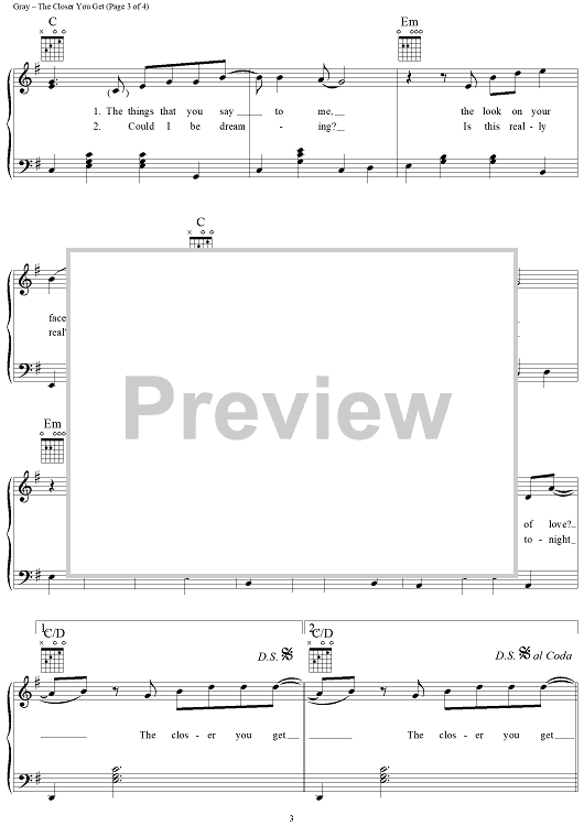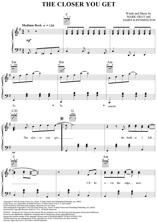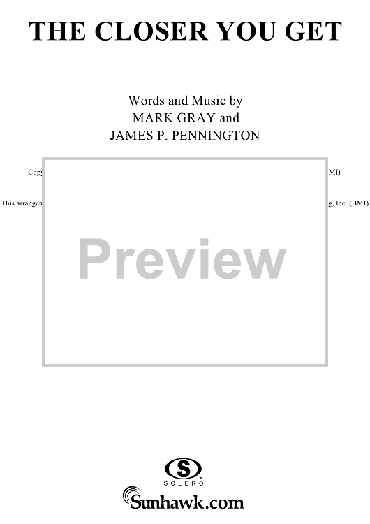 Digital Sheet Music for The Closer You Get by Mark Gray, The Judds, James P. Pennington, Alabama scored for Piano/Vocal/Chords; id:241803