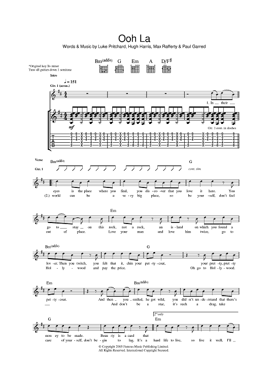 Digital Sheet Music for Ooh La by Paul Garred, Hugh Harris, The Kooks, Luke Pritchard, Max Rafferty scored for Guitar Tab; id:391409