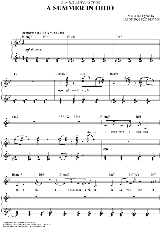 "A Summer in Ohio" Sheet Music by Jason Robert Brown