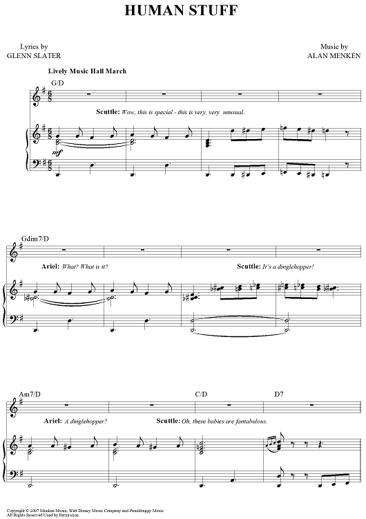 Digital Sheet Music for Human Stuff by Alan Menken, Glenn Slater scored for Piano/Vocal/Chords; id:462966