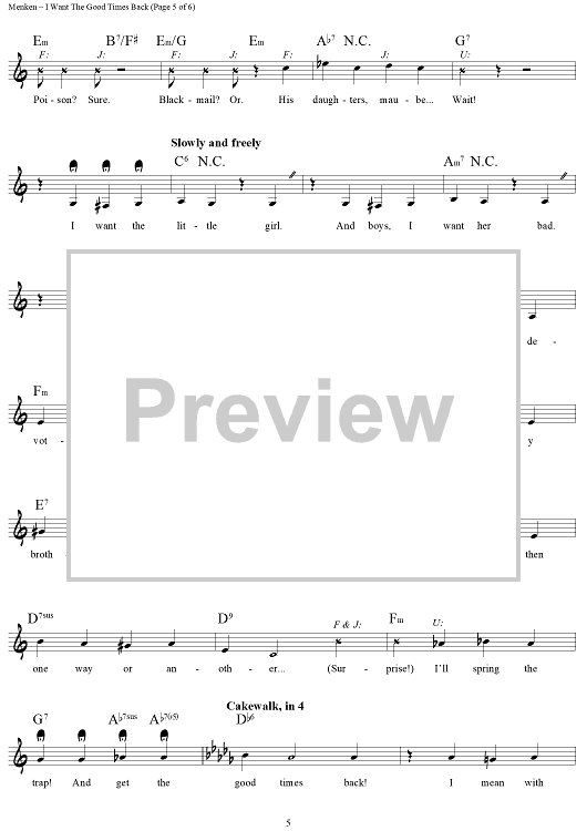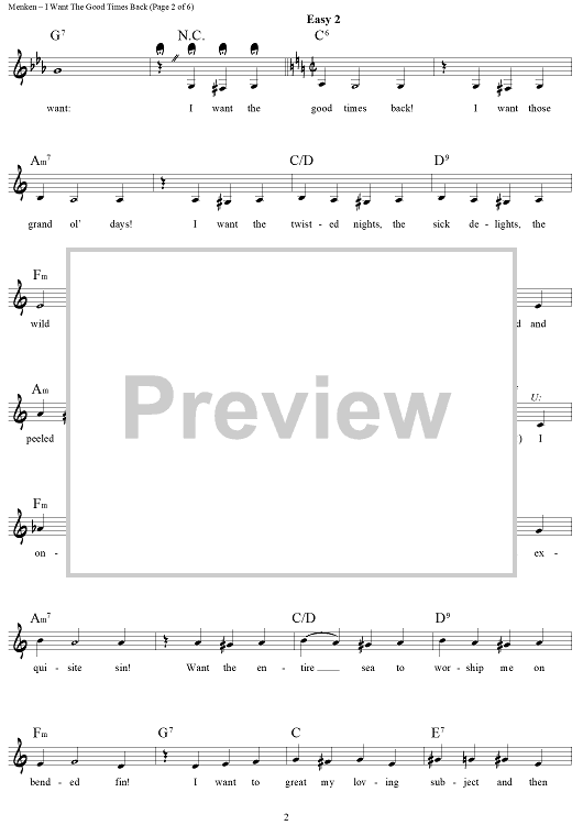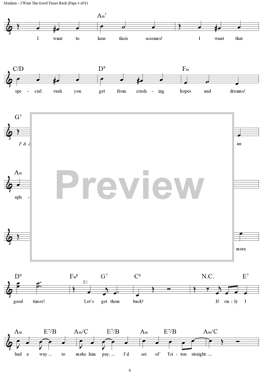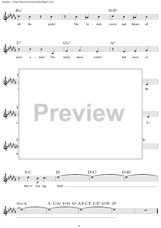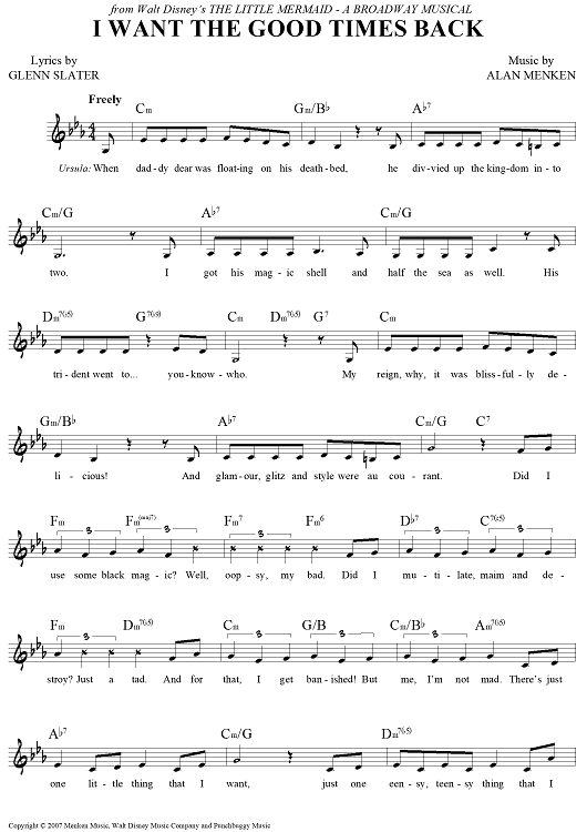 Digital Sheet Music for I Want The Good Times Back by Alan Menken, Glenn Slater scored for Lead Sheet; id:441844