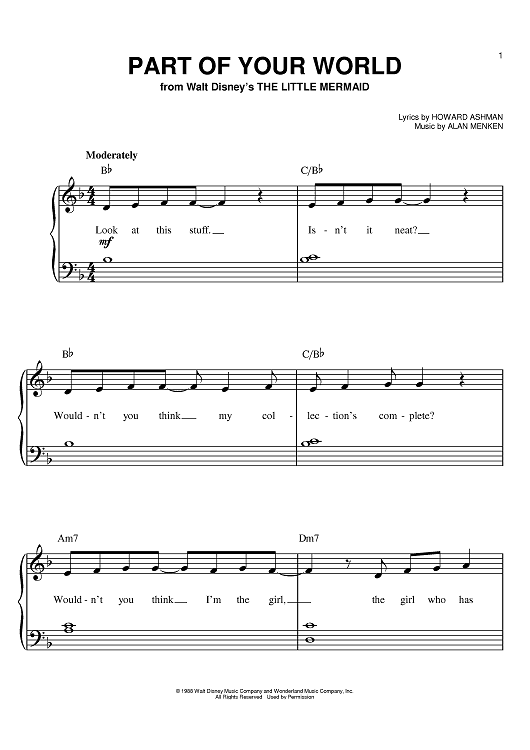 Digital Sheet Music for Part Of Your World by Alan Menken, Howard Ashman scored for Easy Piano; id:387379