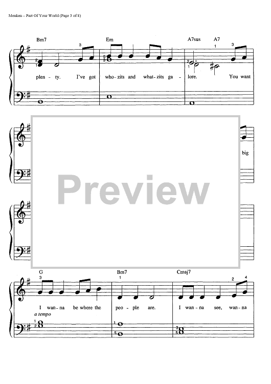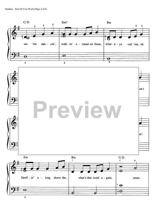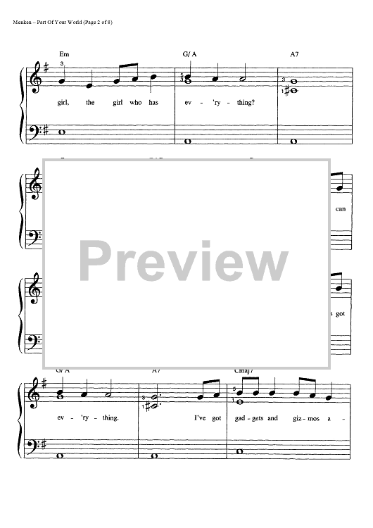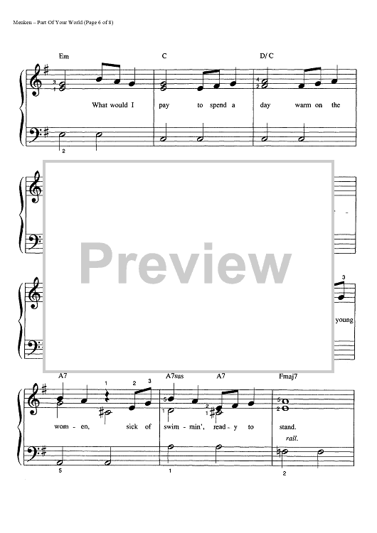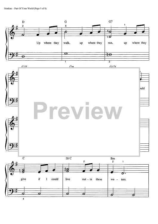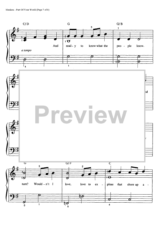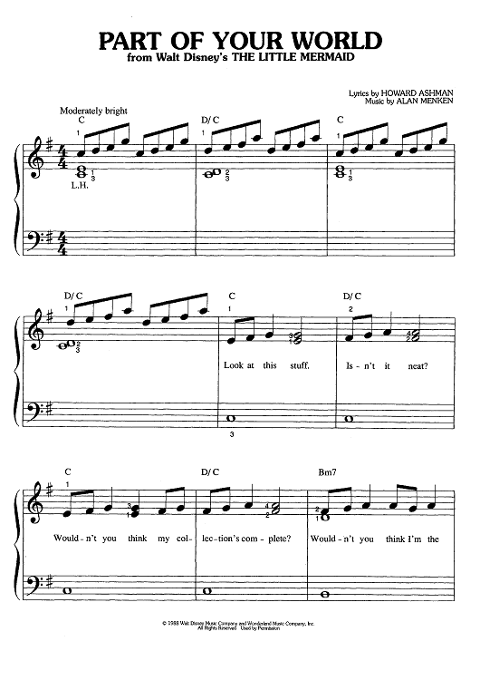 Digital Sheet Music for Part of Your World by Alan Menken, Howard Ashman scored for Big Note Piano; id:444913