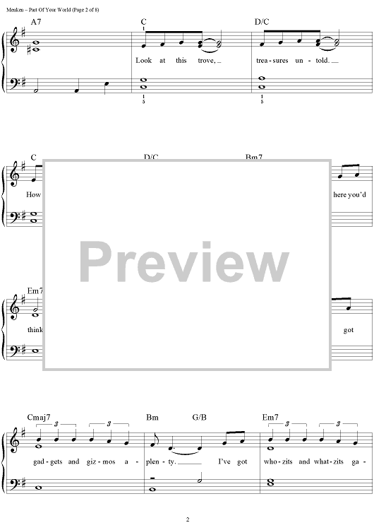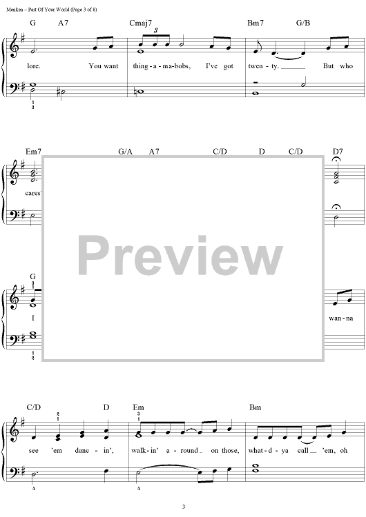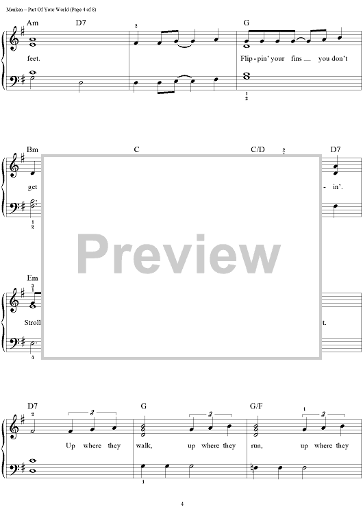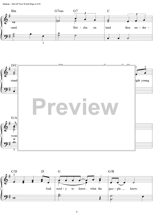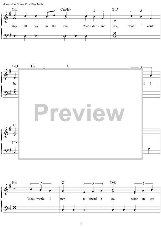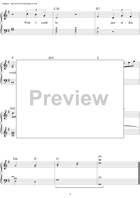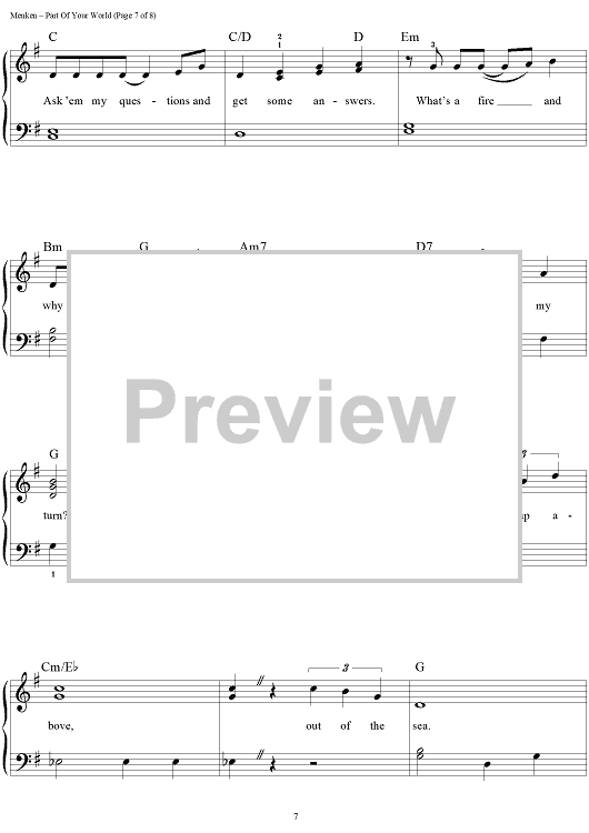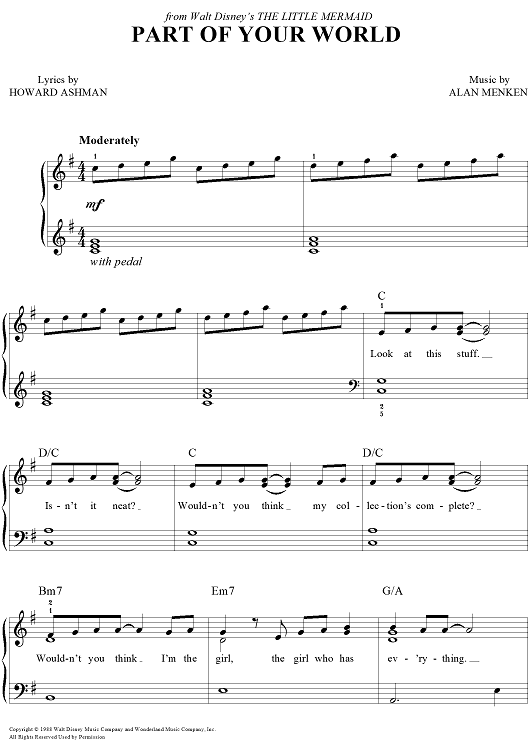 Digital Sheet Music for Part Of Your World by Alan Menken, Howard Ashman scored for Easy Piano/Vocal/Chords; id:453309