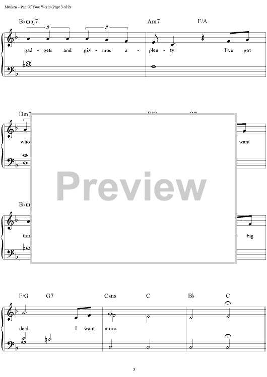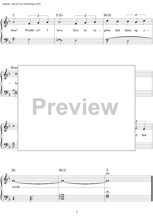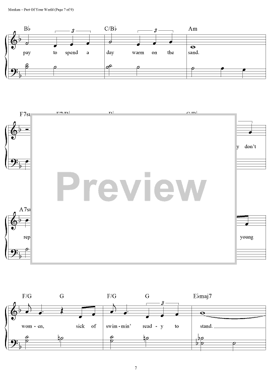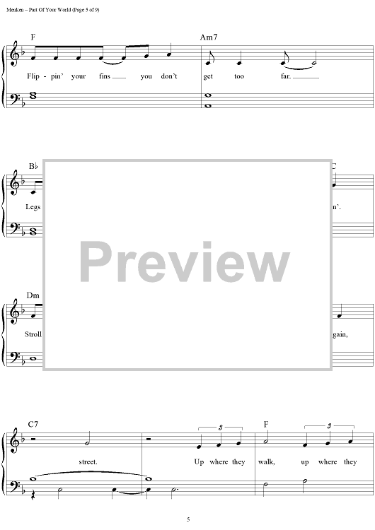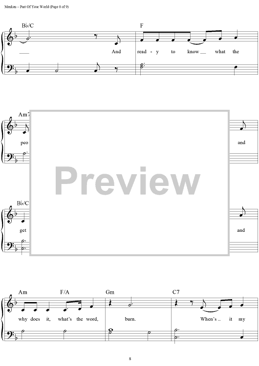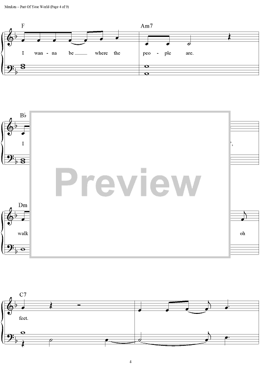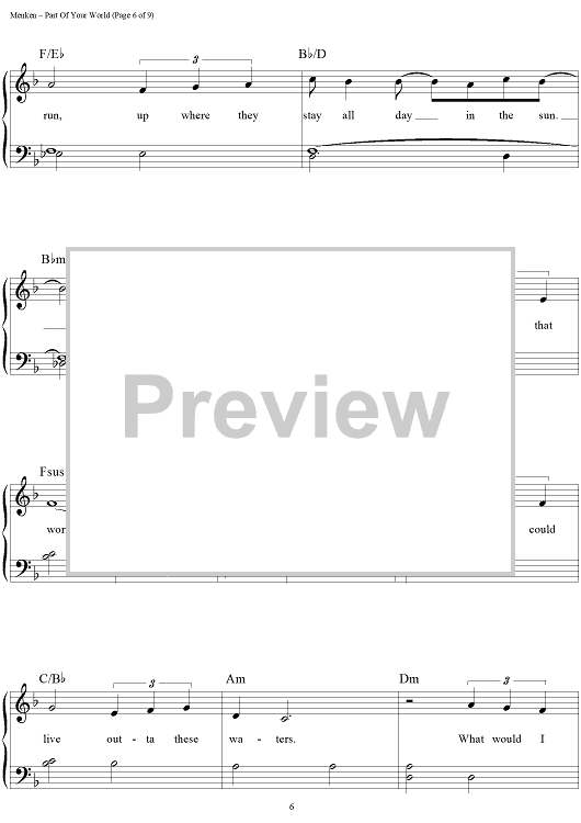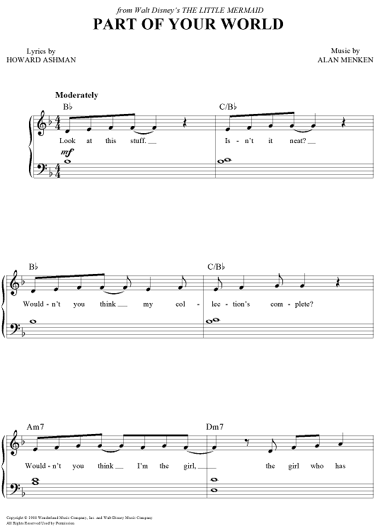 Digital Sheet Music for Part of Your World by Alan Menken, Howard Ashman scored for Easy Piano/Vocal/Chords; id:456424