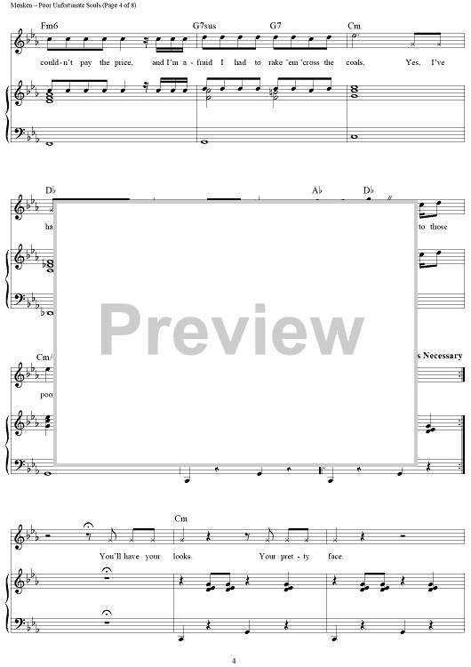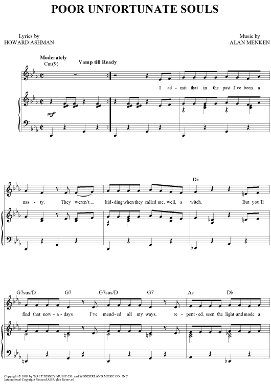 Digital Sheet Music for Poor Unfortunate Souls by Alan Menken, Howard Ashman scored for Piano/Vocal/Chords; id:418170