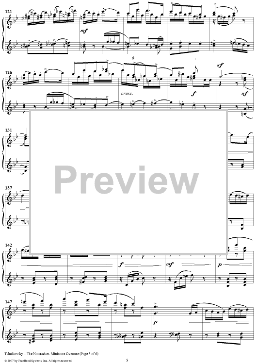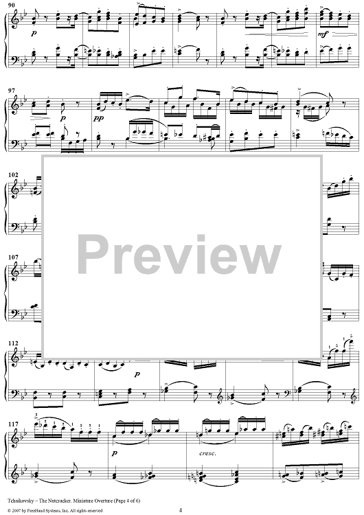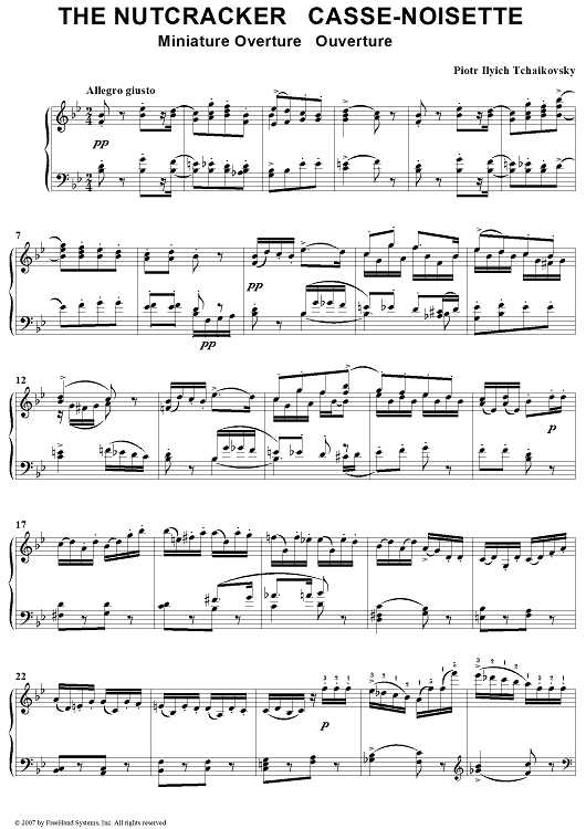 Digital Sheet Music for The Nutcracker. Miniature Overture by Peter Ilyich Tchaikovsky scored for Piano Solo; id:364603