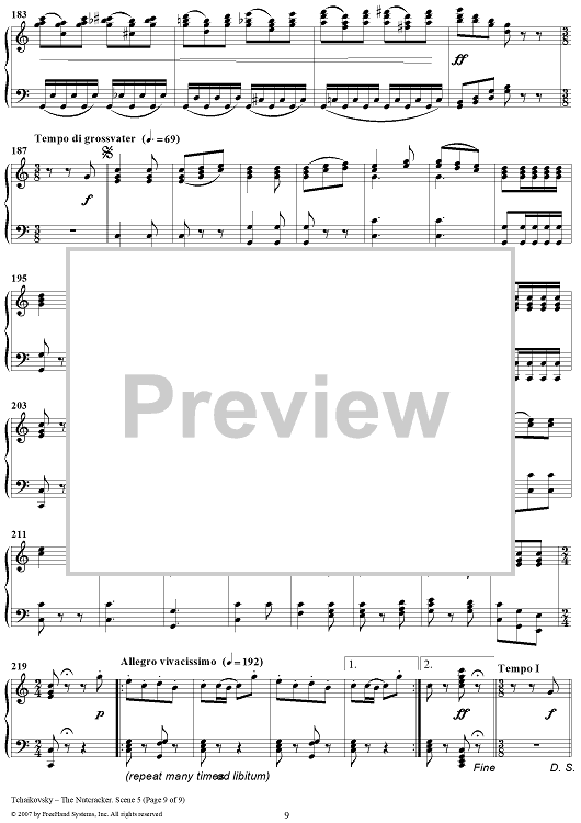 Digital Sheet Music for The Nutcracker. Scene No. 5. The Nutcracker and Grandfather Dance by Peter Ilyich Tchaikovsky scored for Piano Solo; id:364611