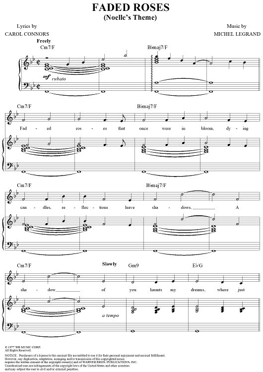 Digital Sheet Music for Faded Roses (Noelle's Theme) by Michel LeGrand, Carol Connors scored for Piano/Vocal/Chords; id:139887