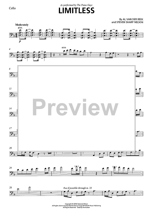 Digital Sheet Music for Limitless (As performed by The Piano Guys) by Jon Schmidt, Al Van Der Beek, The Piano Guys scored for Cello and Piano; id:467379