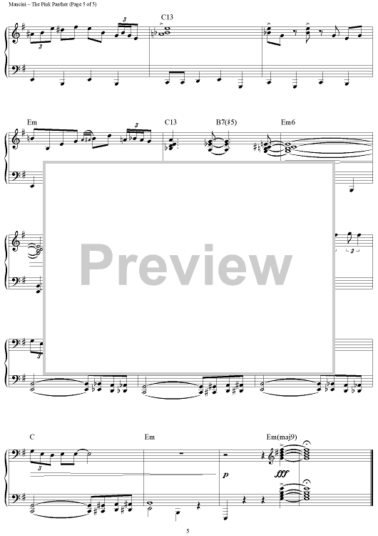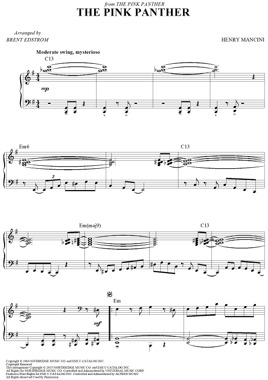 Digital Sheet Music for The Pink Panther by Henry Mancini, Brent Edstrom scored for Piano Solo; id:458550