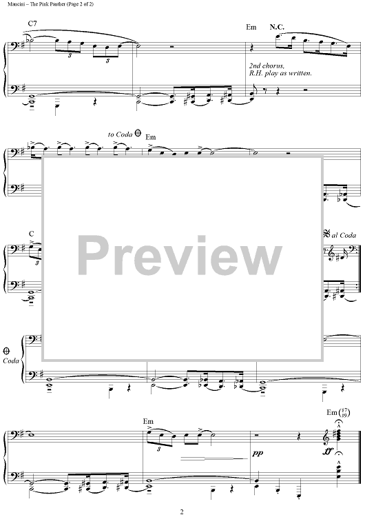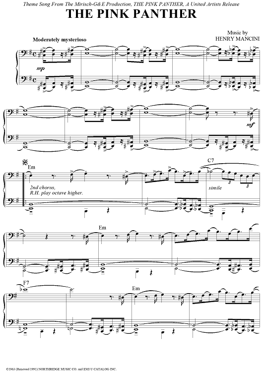 Digital Sheet Music for The Pink Panther by Henry Mancini scored for Piano Solo; id:94753