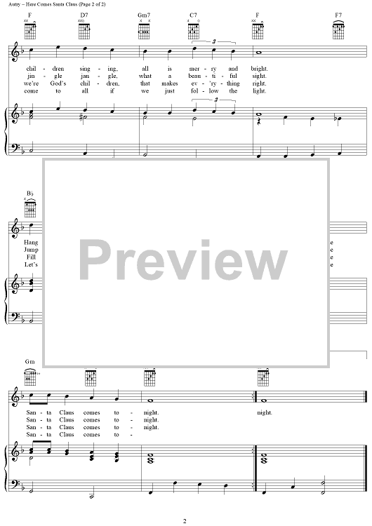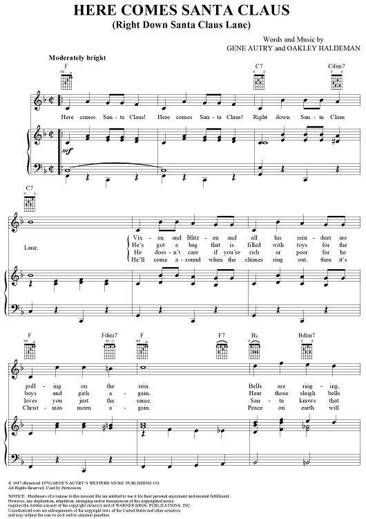 Digital Sheet Music for Here Comes Santa Claus (Right Down Santa Claus Lane) by Gene Autry, Oakley Haldeman scored for Piano/Vocal/Chords; id:307873