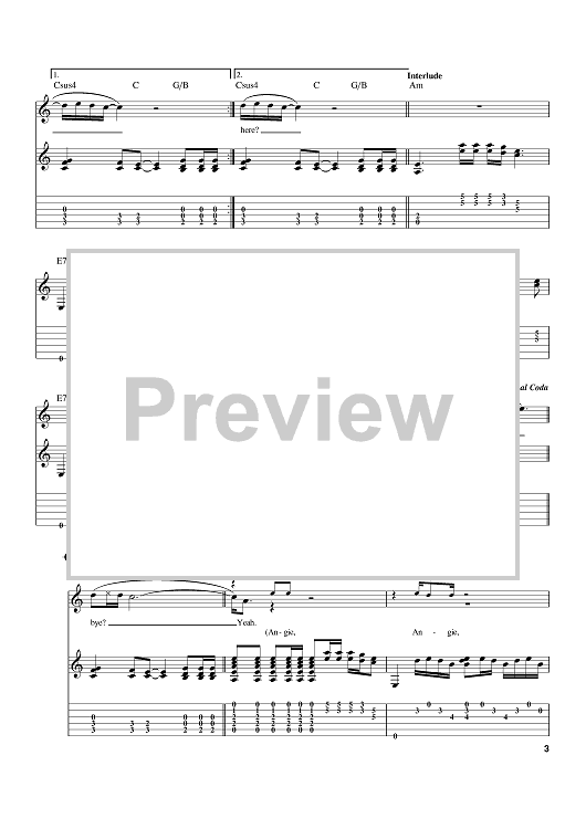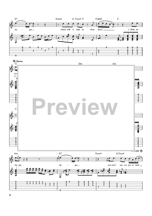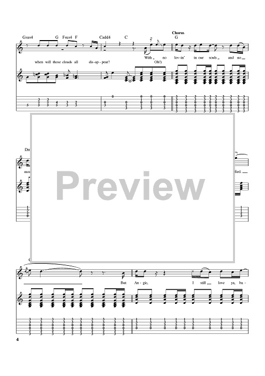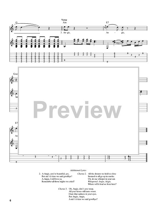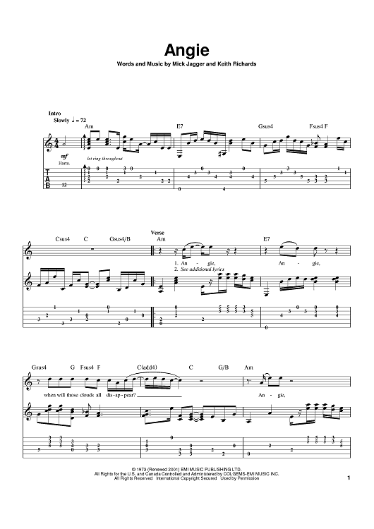 Digital Sheet Music for Angie by Keith Richards, The Rolling Stones, Mick Jagger scored for Guitar Tab; id:374165
