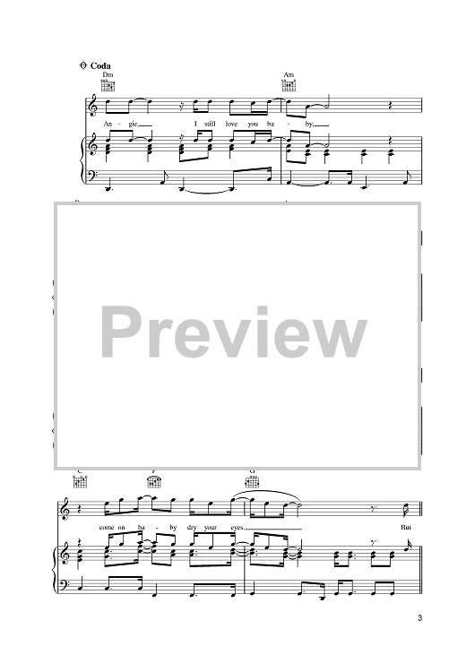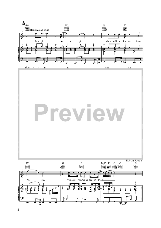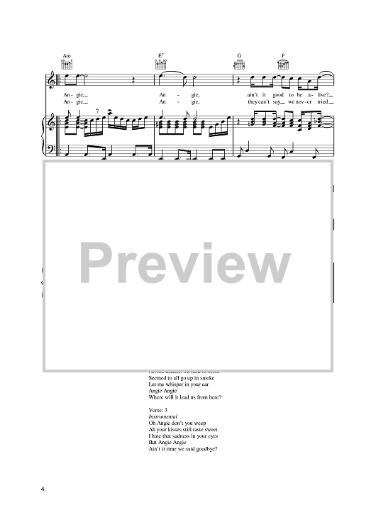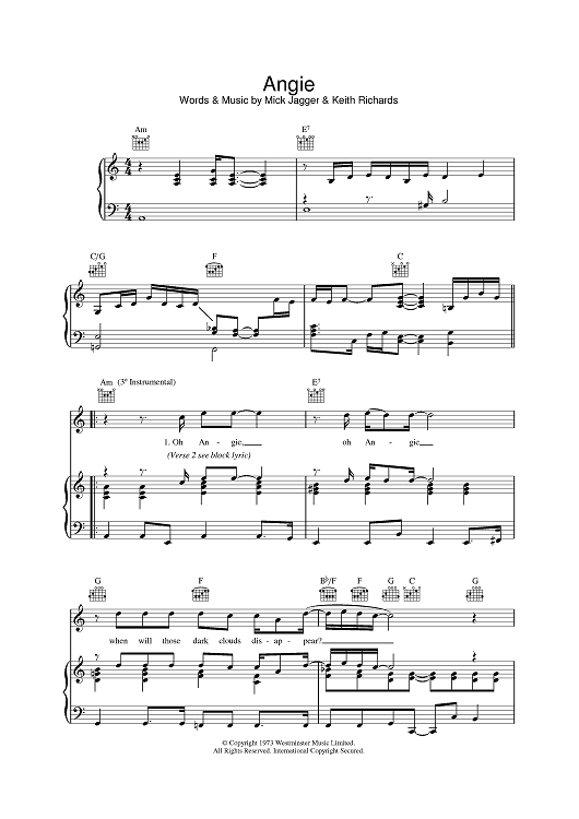 Digital Sheet Music for Angie by Keith Richards, The Rolling Stones, Mick Jagger scored for Piano/Vocal/Chords; id:382710