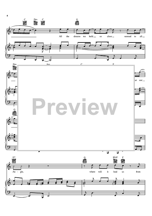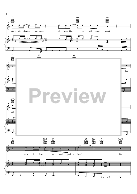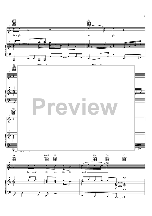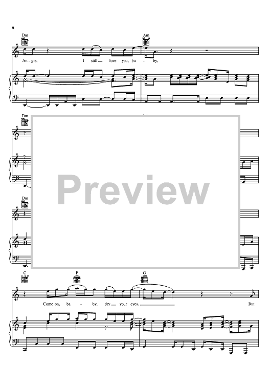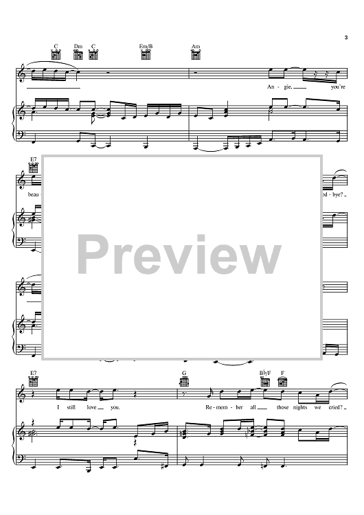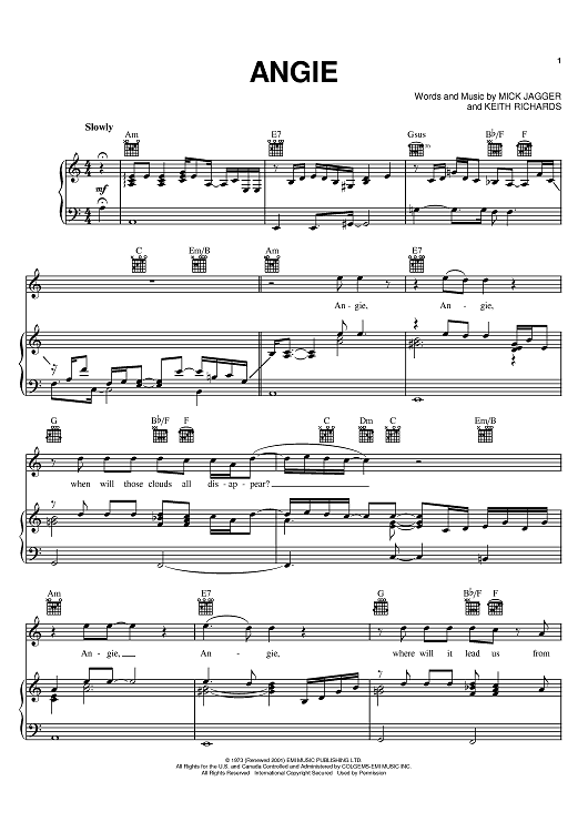 Digital Sheet Music for Angie by Keith Richards, The Rolling Stones, Mick Jagger scored for Piano/Vocal/Chords; id:383978