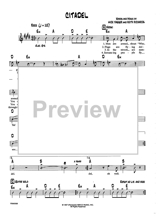 Digital Sheet Music for Citadel by Keith Richards, The Rolling Stones, Mick Jagger scored for Lead Sheet; id:437302